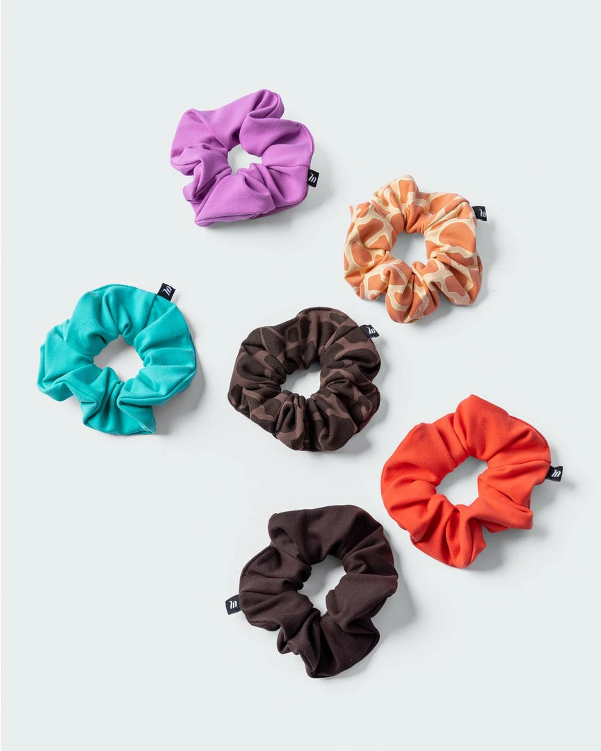 Our Athletica Scrunchie Pack includes a mixture of prints and solid colours, to match all your gym outfits.ย