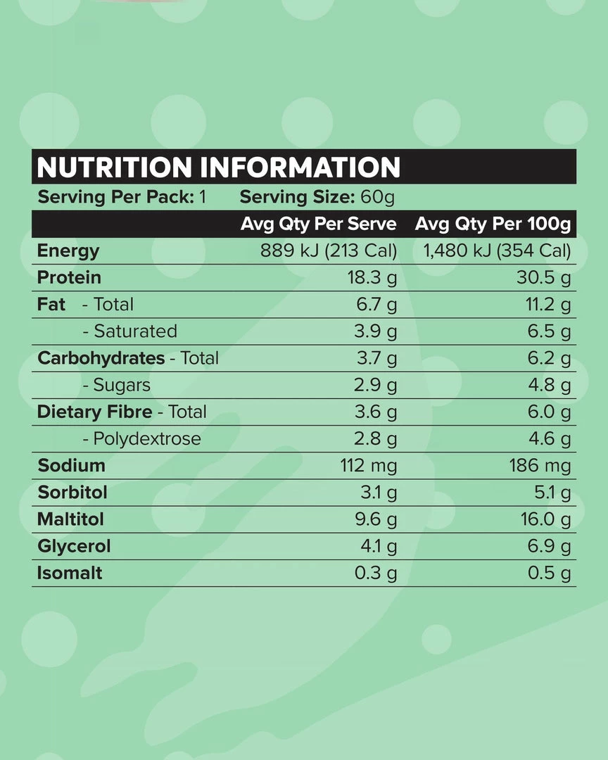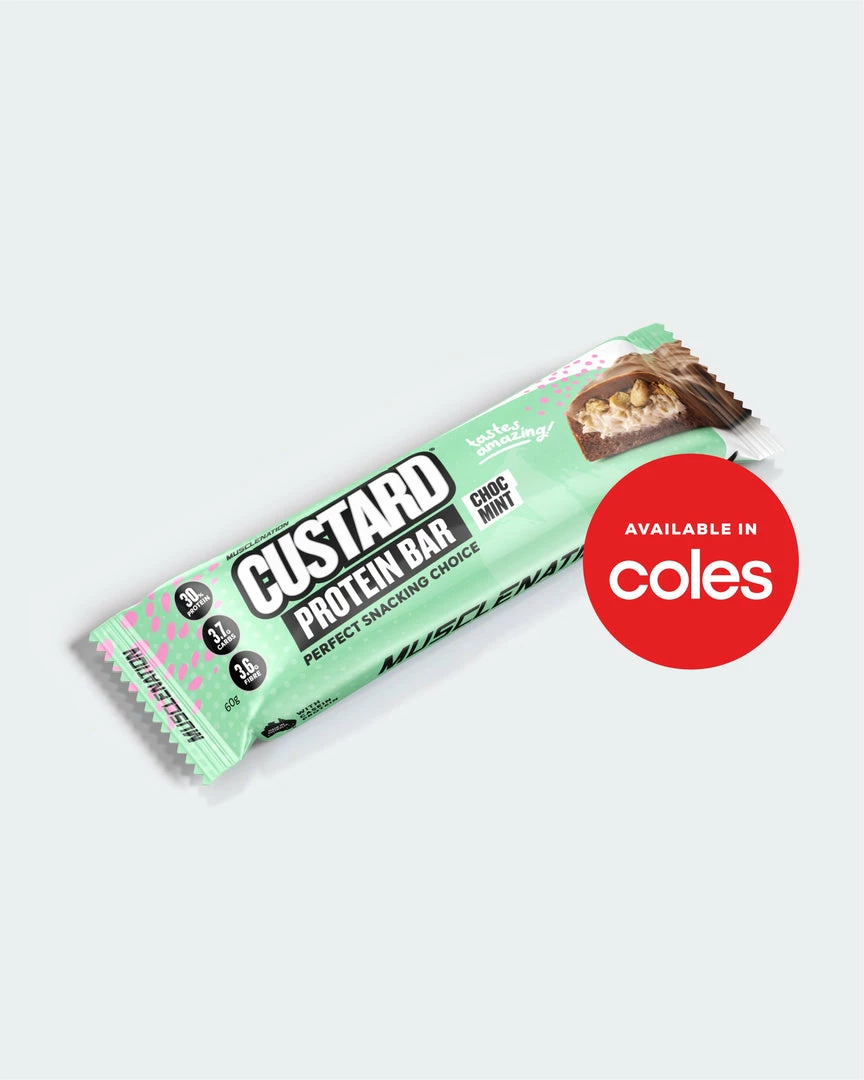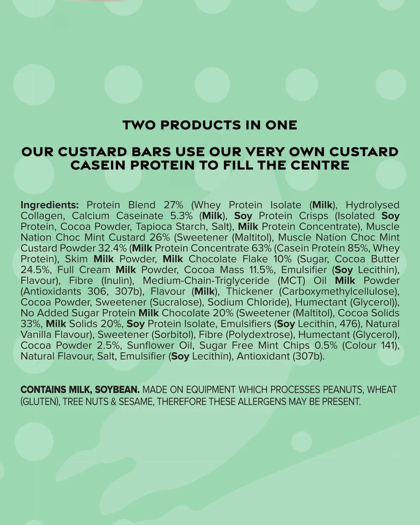 A mouth-watering protein bar featuring a smooth choc mint custard layer, sprinkled with crunchy nibbles and coated in a lush layer of chocolate. Itโs the ultimate protein packed snack made with our renowned Custard Protein to keep you feeling fuller for longer.
