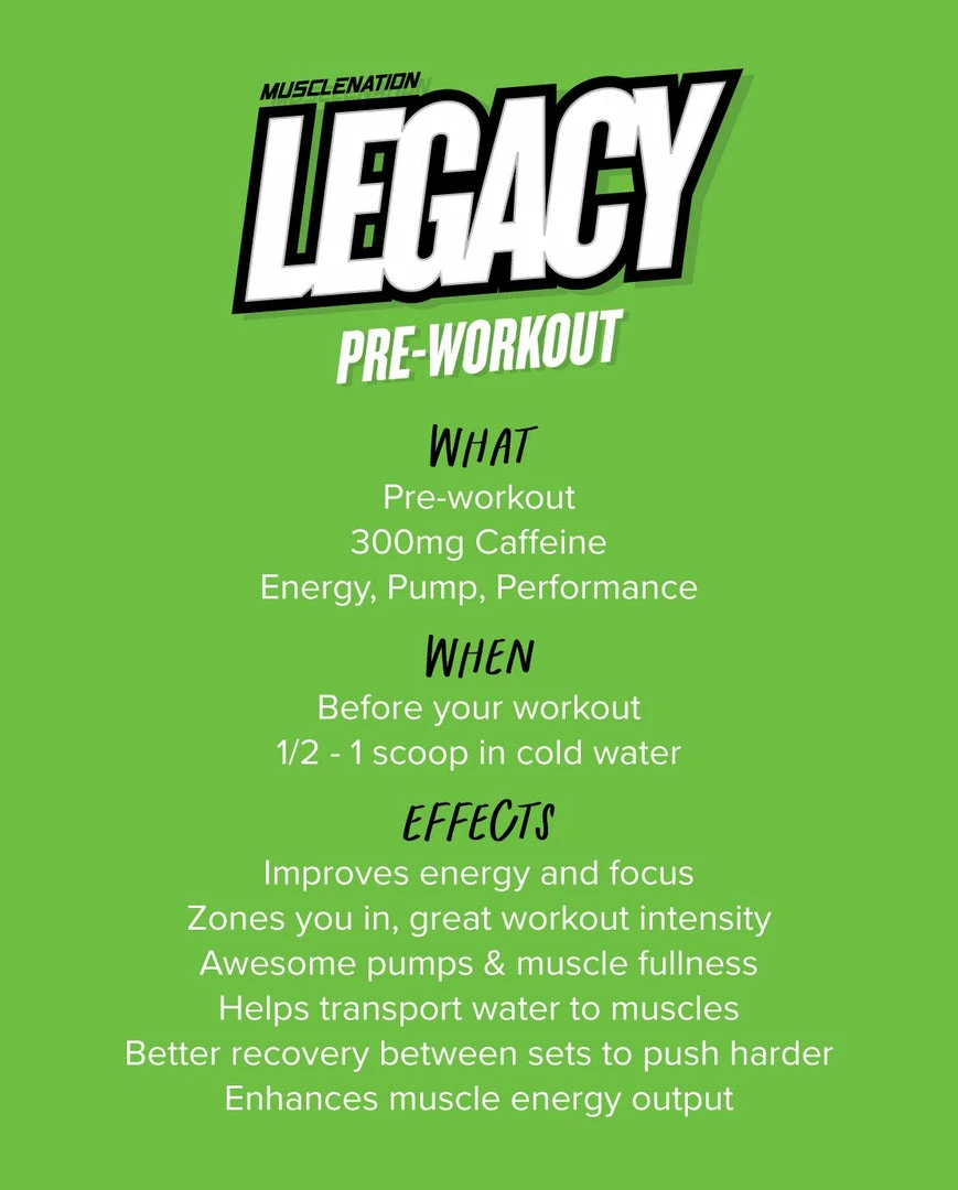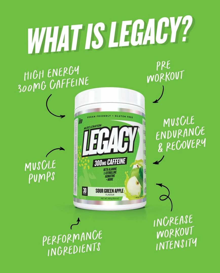 New 😀 Muscle Nation 30% EOFY SALE LEGACY Pre Workout Energy – Sour Green Apple – 30 Serves 🎉