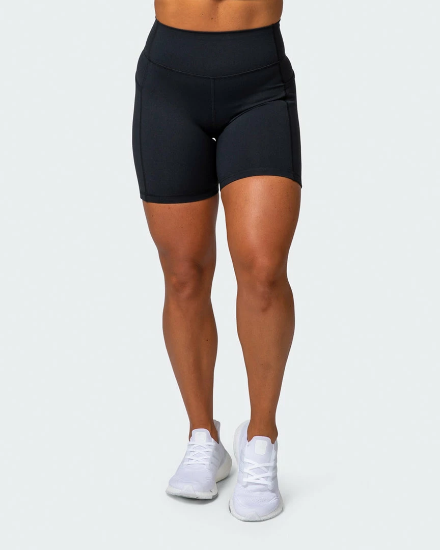 Our Signature Pocket Bike Shorts feature a large side leg pocket which goes to the bottom hem, to secure your phone and other essentials during your workout or on-the-go!
