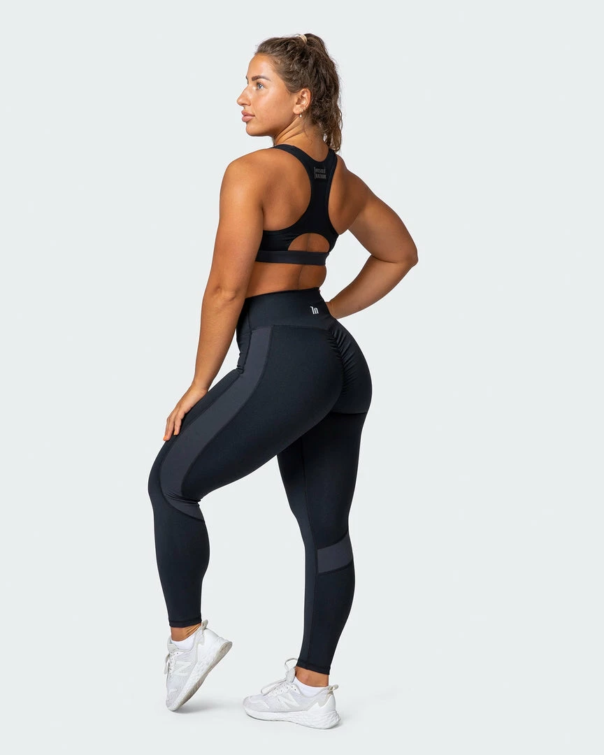 Features include a figure-flattering scrunch bum, contrast side leg panels, and our MN Classic high waistband for support.