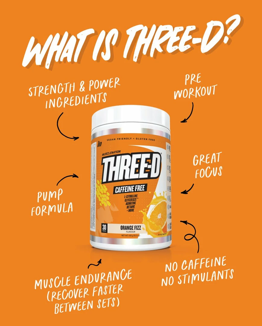 Three-D is our caffeine free pre-workout for anyone who wants that extra push and pump, but without theย jitters and anxiety.