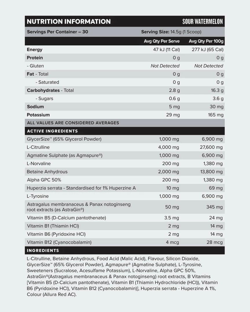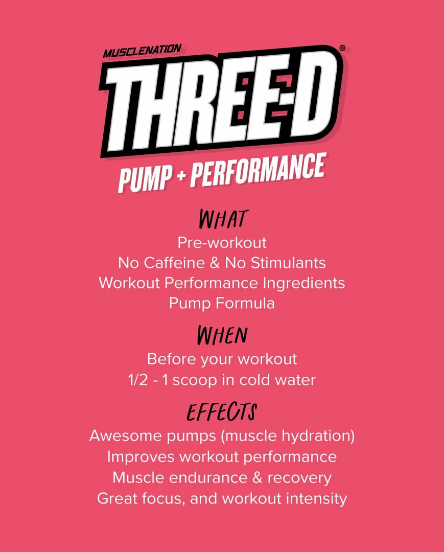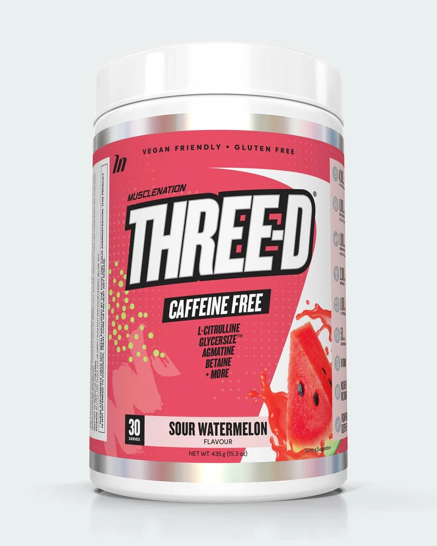 If you are sensitive to caffeine but still want all the benefits of a pre-workout (minus the caffeine), then Three-D is for you.ย Three-D is packed with all the goodies like Citrulline, Glycerol, Agmatine and more.