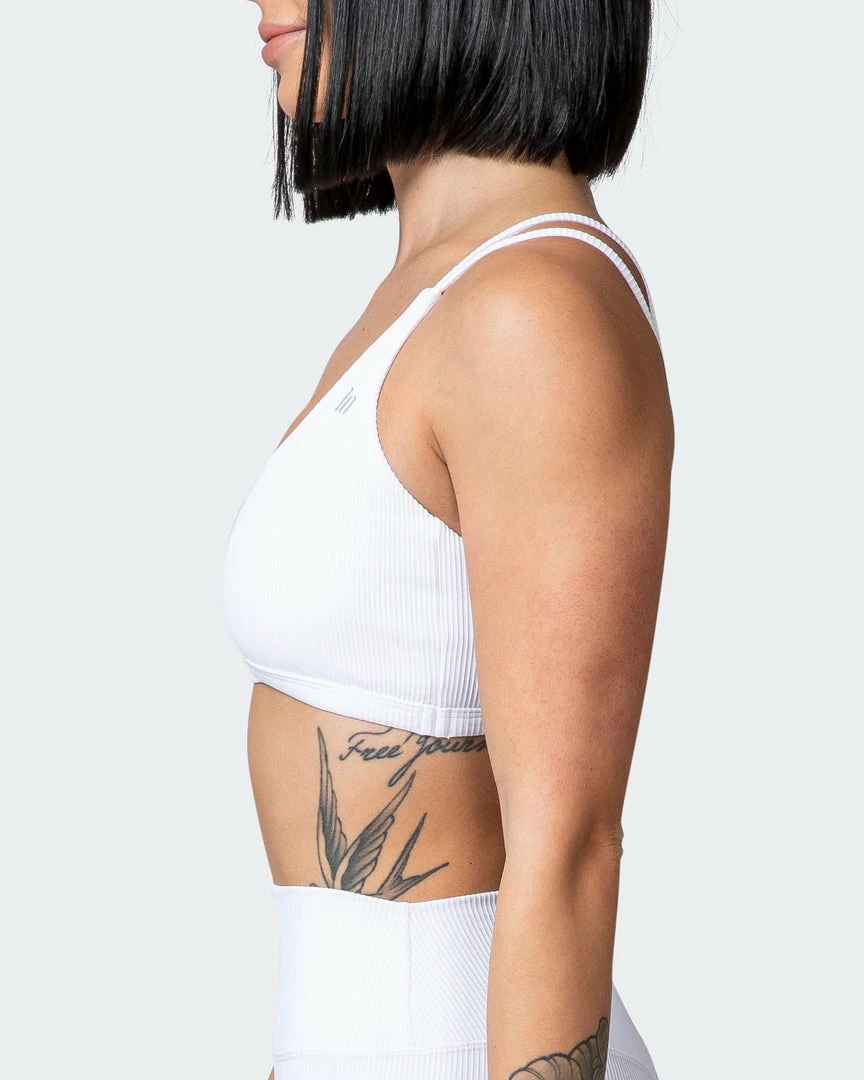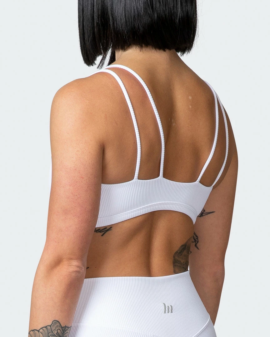 The All Day Rib Bralette features a simple over the shoulder, dual back strap design with a cute keyhole cutout on the front.