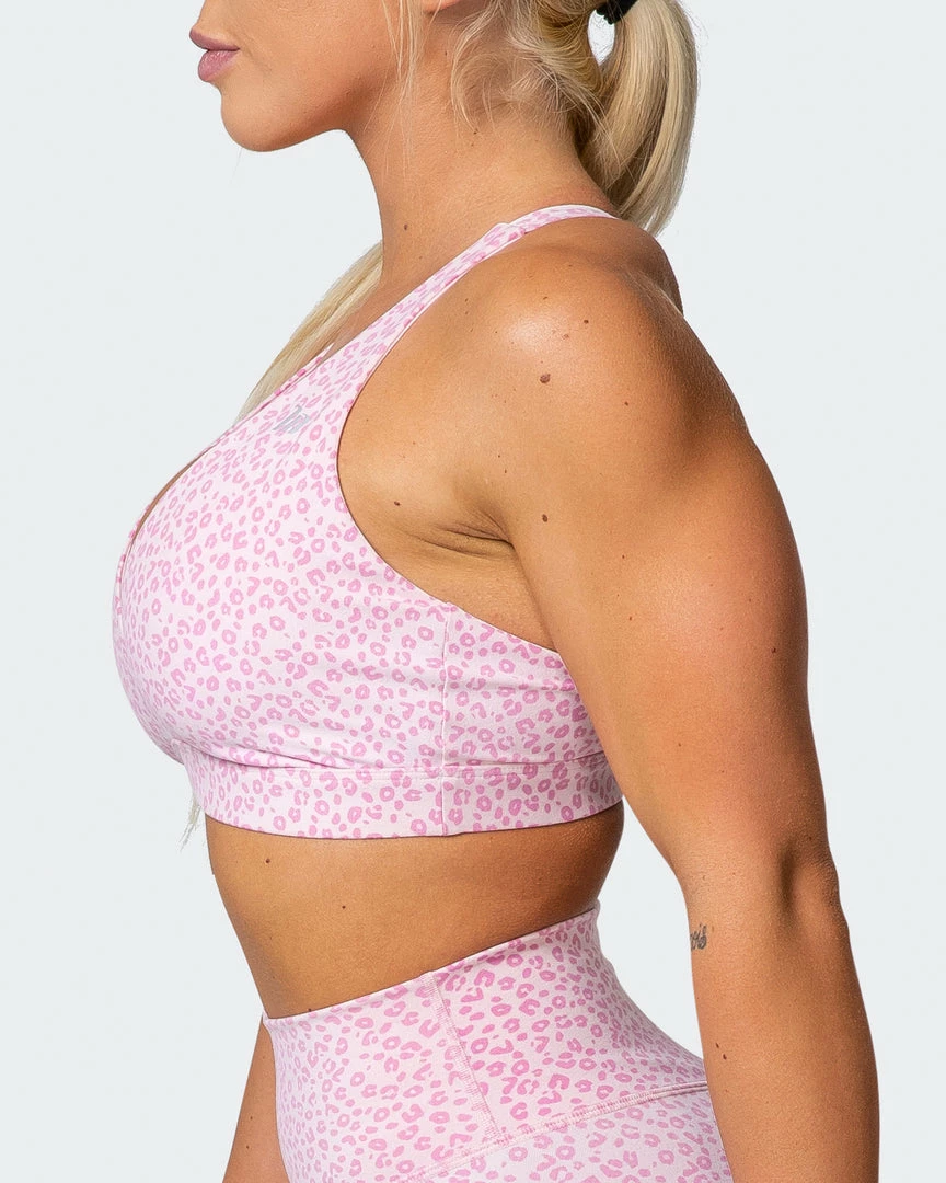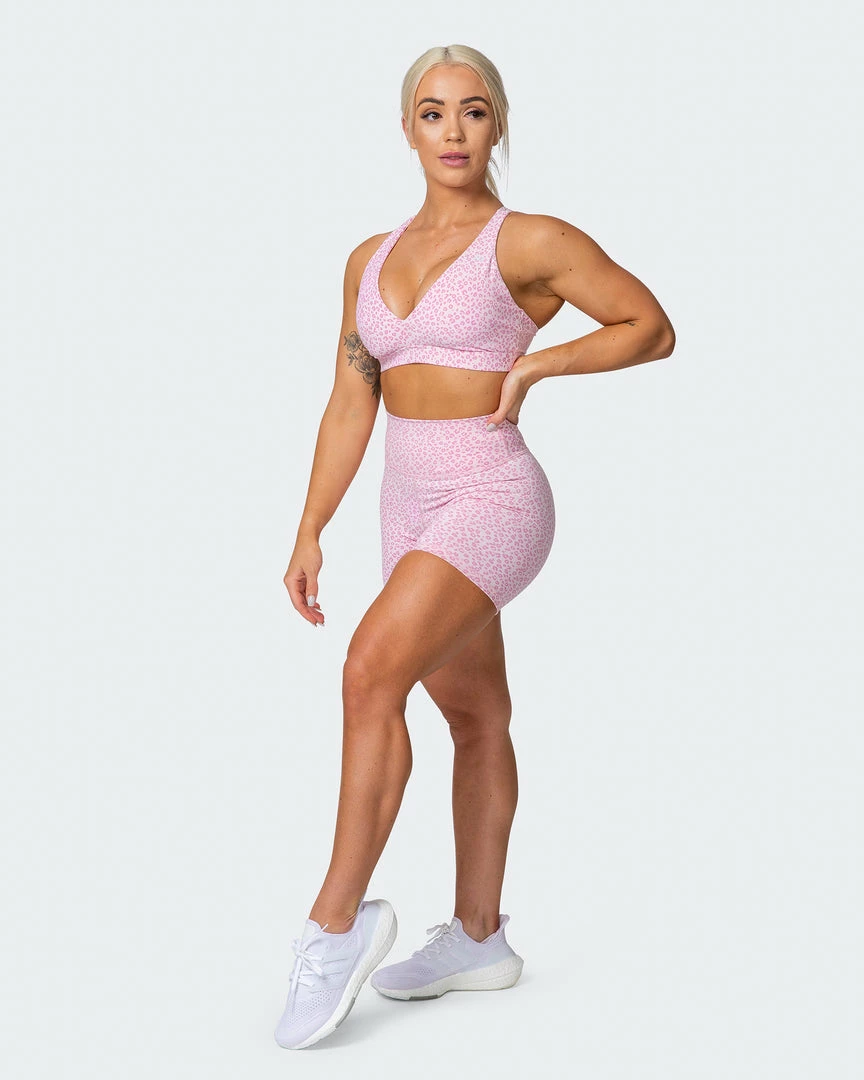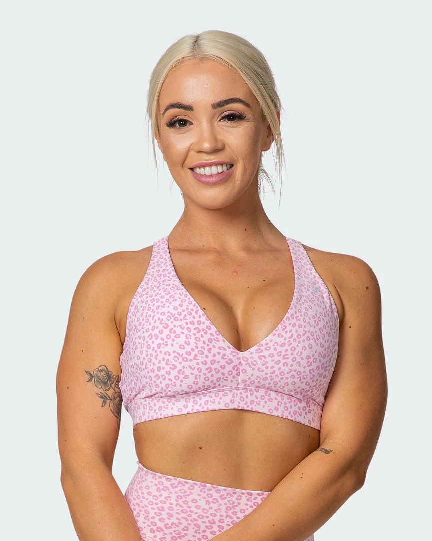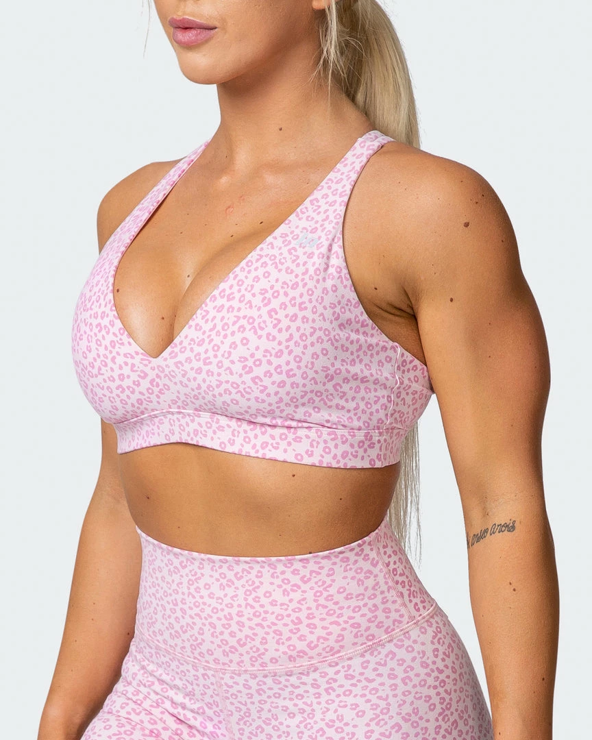 Cheapest 👏 Muscle Nation All-Star Deep V Bra – Rose Quartz Mini Cheetah Print Welcome To The Club 💯