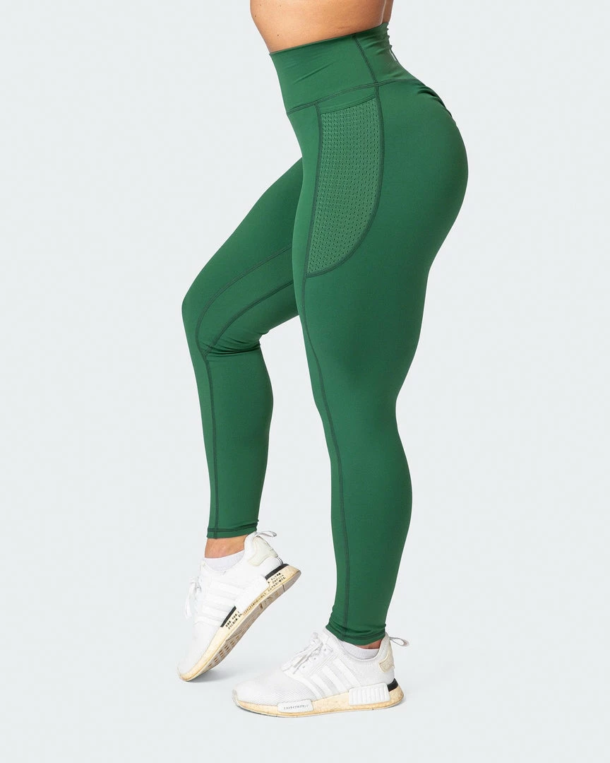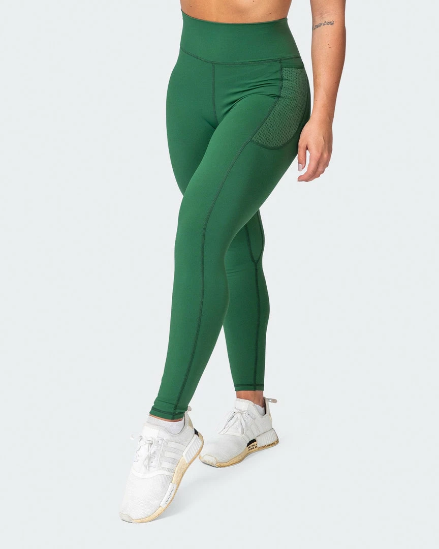 Details include side leg pockets with a decorative mesh overlay – perfect for holding your phone while training.