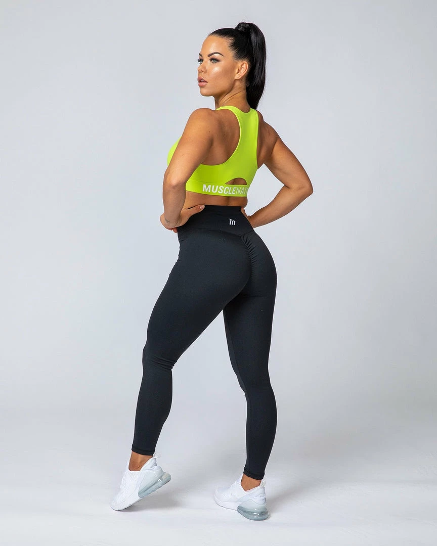 Details includeย high-shine silicone Muscle Nation branding on the back waistband in a pop ofย white and removable padding.ย