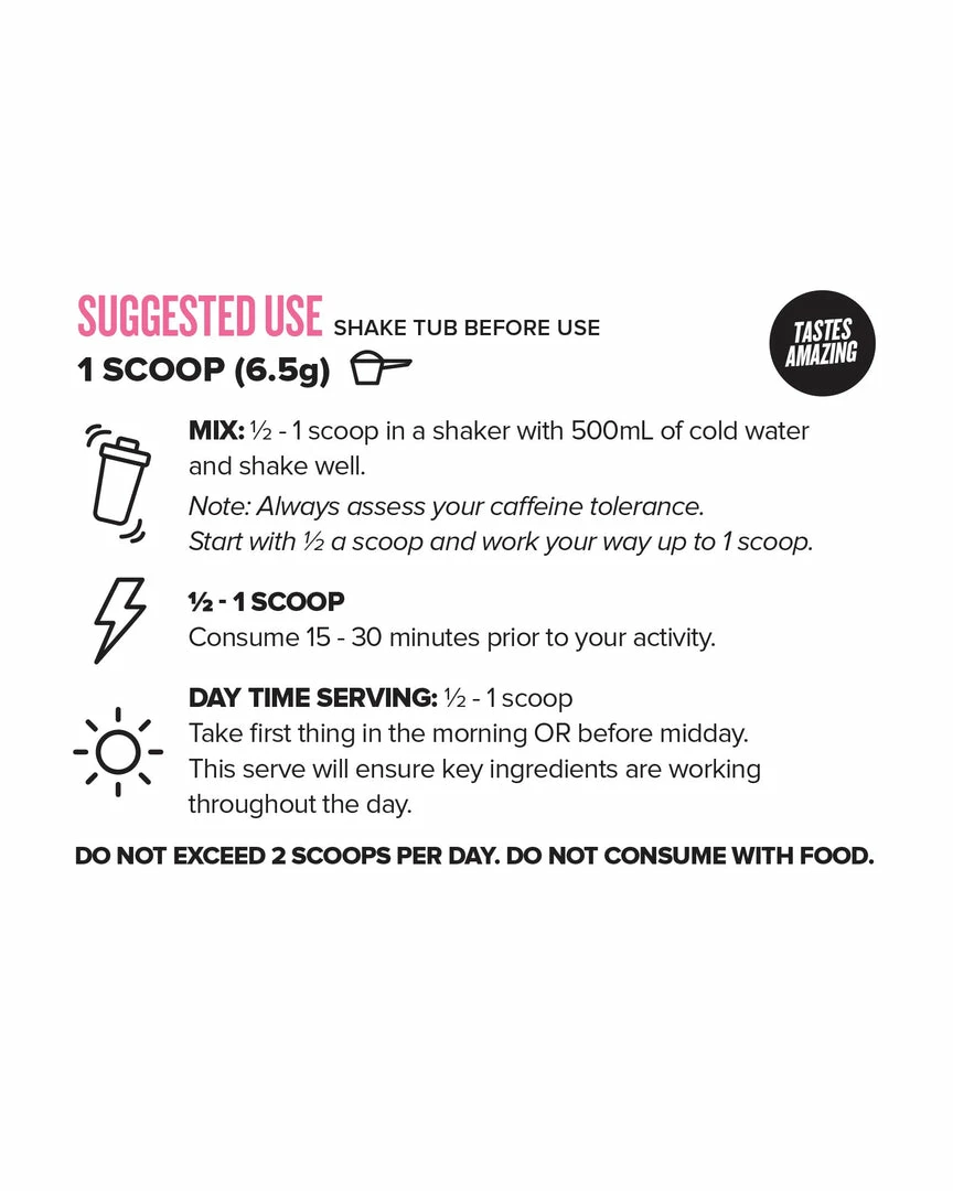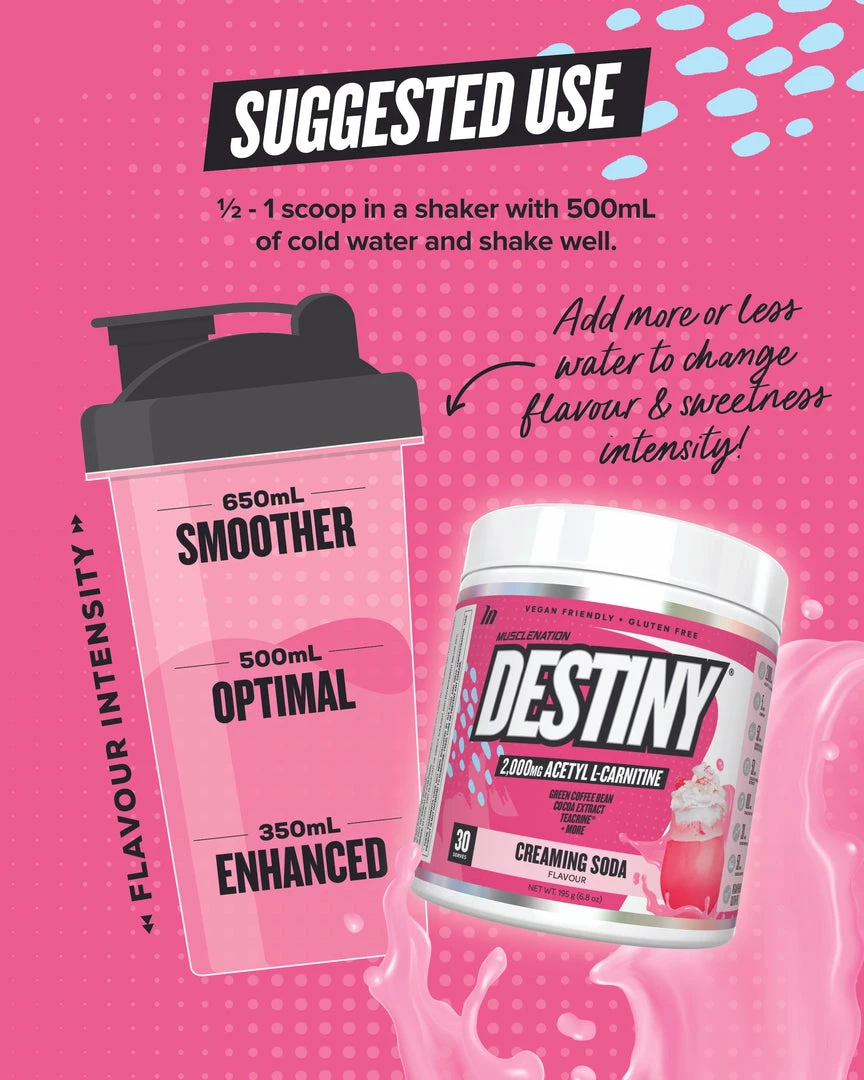 Destiny has the perfect amount of caffeine (150mg per serve), to help kick start your morning, pick-me-up during the day and before any activity (cardio, workout etc). Destiny tastes amazing, and is a customer favourite.
