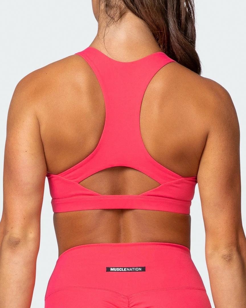 Features of this style include a racer back with keyhole detail and a subtle square neckline.ย