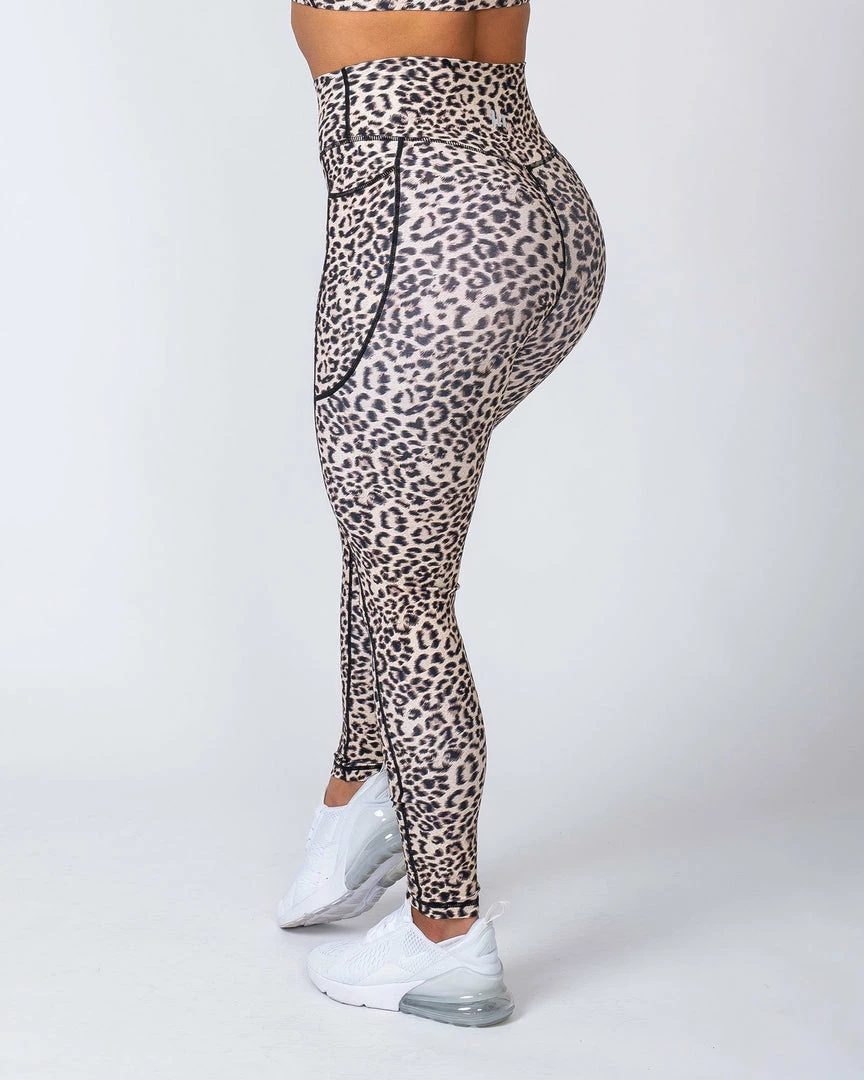 Details of this high waisted design include a non-scrunch back andย side pockets for holding essentials. They’re the perfect size pocket to fit your phone!