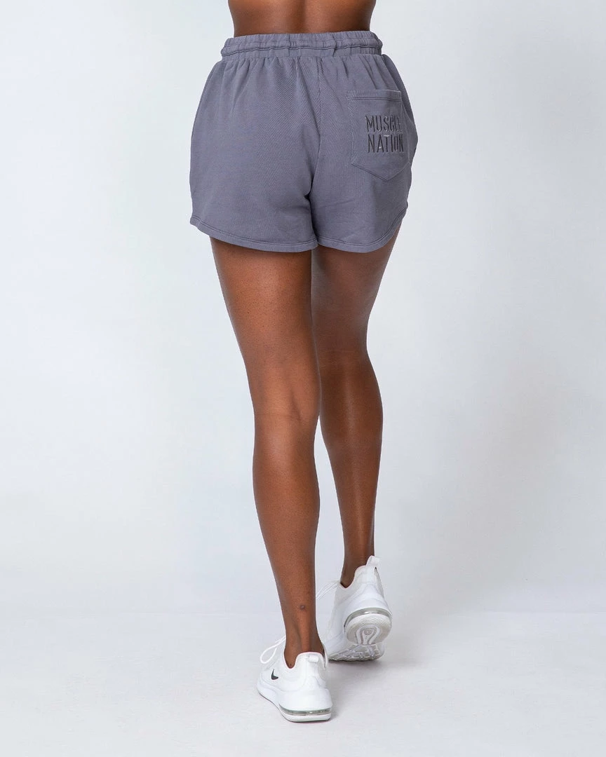 Finished in a fashion-forward acid wash for a vintage look.ย Branded with a tonal Muscle Nation embroidered logo on the rear pocket.ย