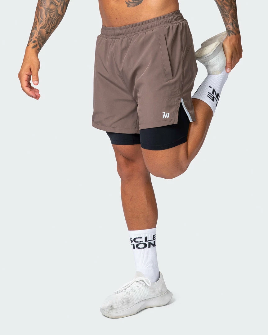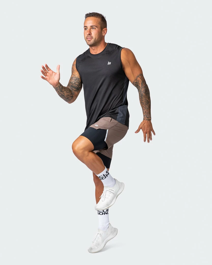 These two-in-one shorts feature reflective taping down the side seams and outer pockets for holding essentials.ย