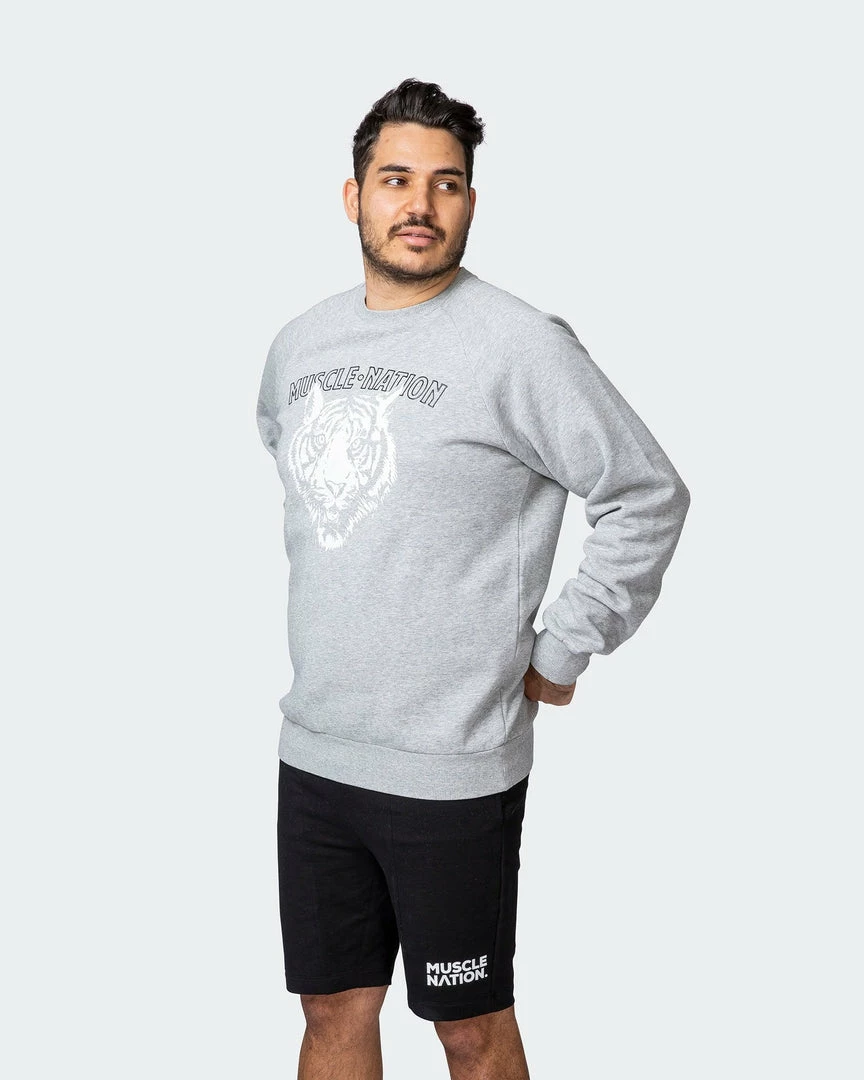 Branded with a high-shine silicone Muscle Nation keyline logo, with a bold tiger print on the front.