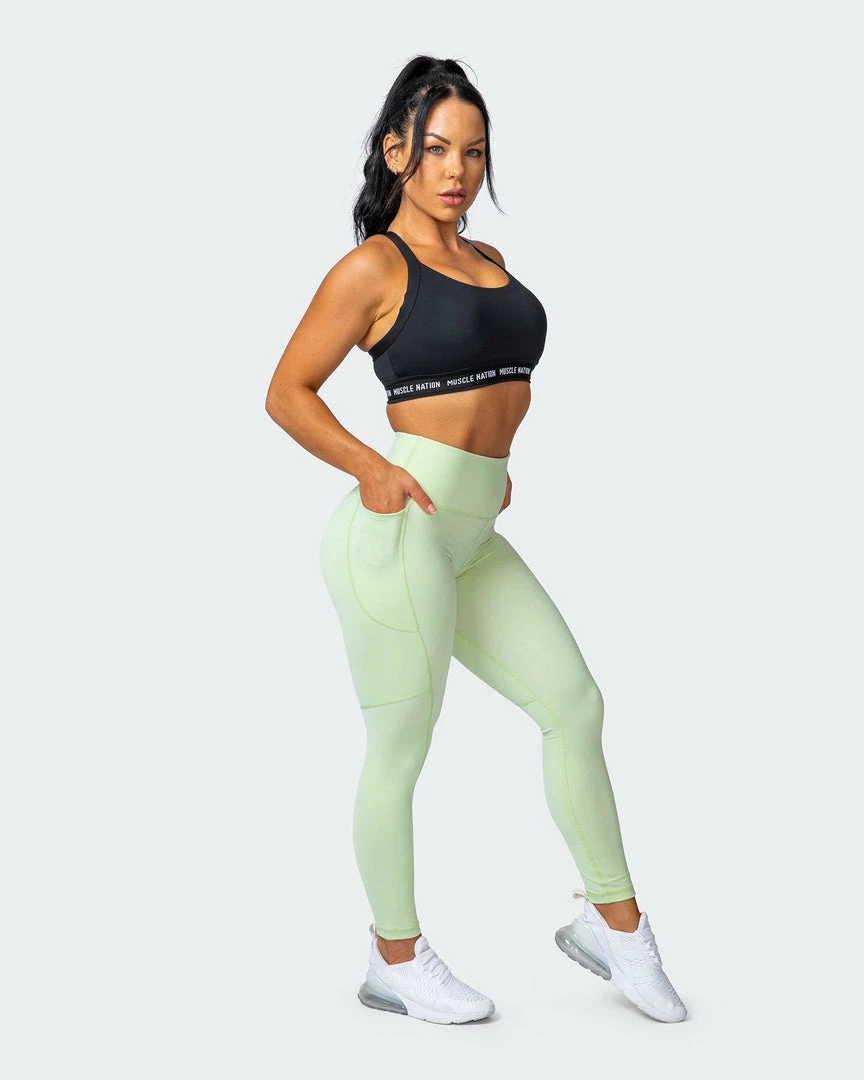 Cheapest 🌟 Muscle Nation Non Scrunch Superior Squat Pocket Ankle Length Leggings – Minty 😍