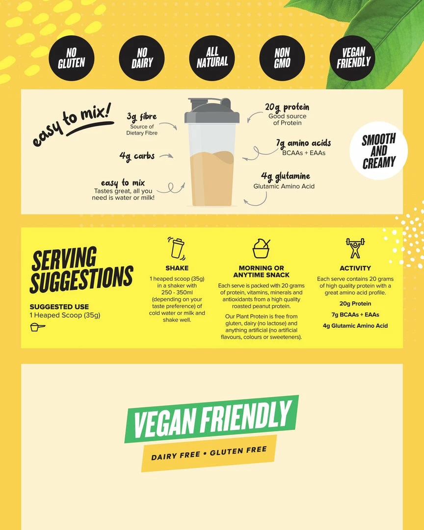Our Plant Protein is the perfect vegan friendly, dairy free and gluten free protein snack.ย
