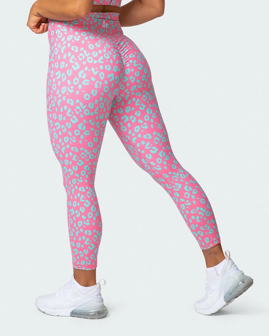Coupon 🌟 Muscle Nation Scrunch Bum Signature Scrunch 7/8 Leggings – Cotton 🍬 Candy Cheetah Print ✔️