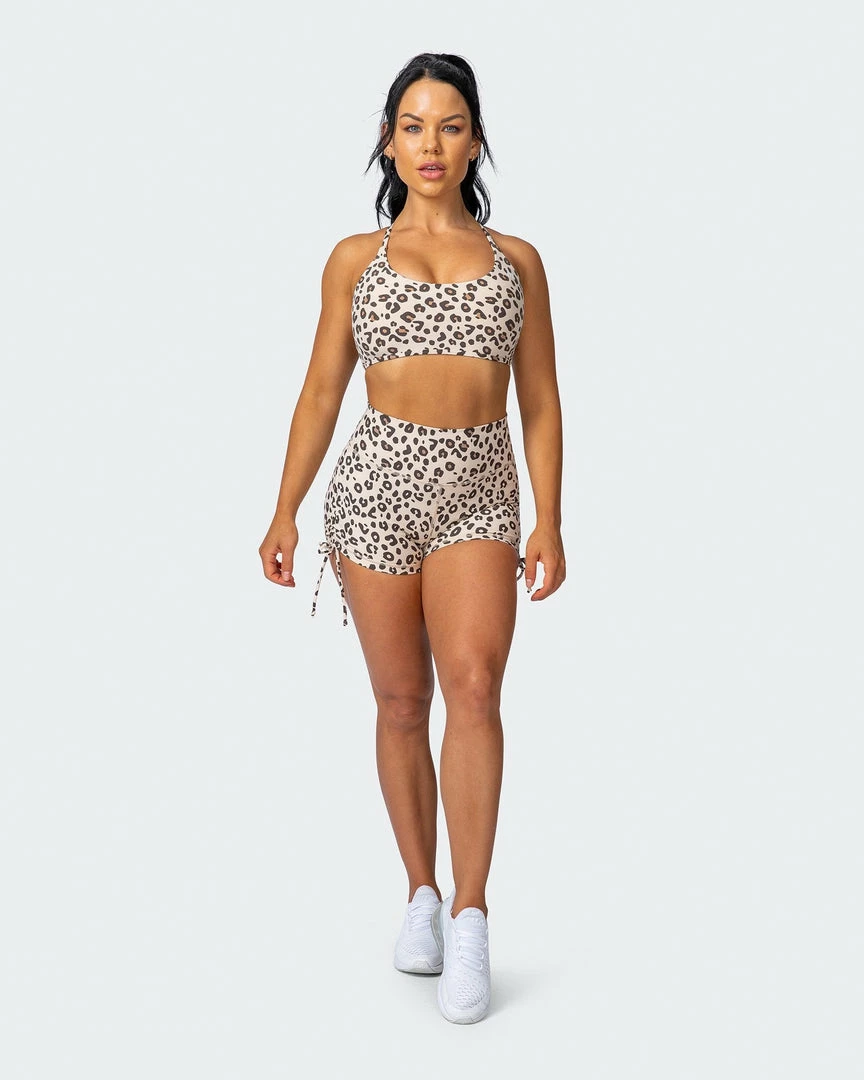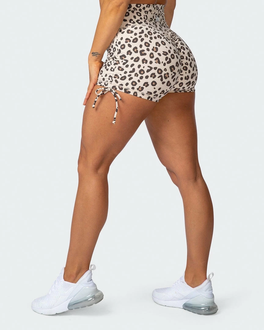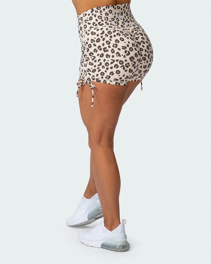 Cheapest 🌟 Muscle Nation Signature Scrunch Tie Up Shorts – Cheetah Print 🎉