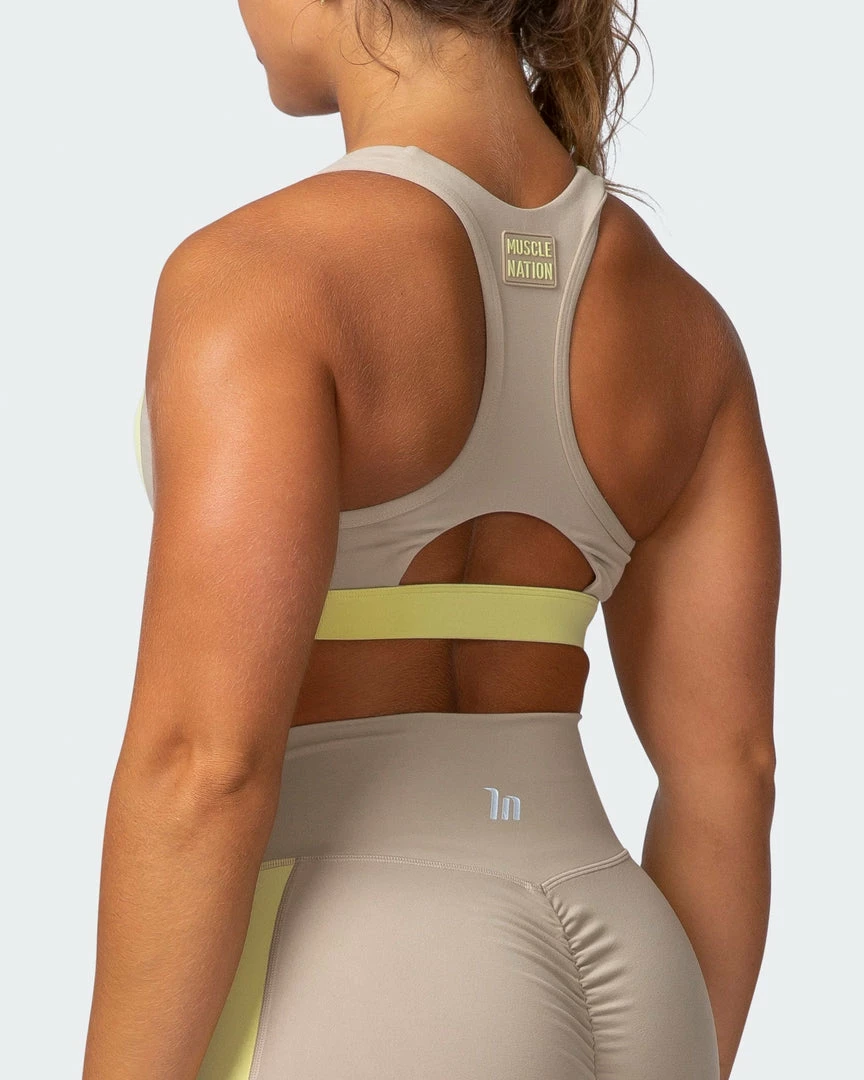 The Sizzle bra will have you turning heads. Crafted from our Signature Fabric, it features front and back keyhole detailing to keep you cool while your workout heats up!