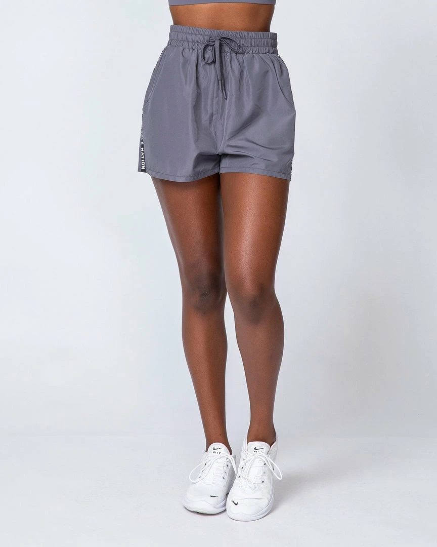 Features of these high-rise shorts include a drawcord elasticated waistband and side pockets.ย