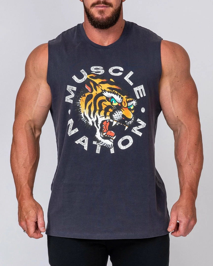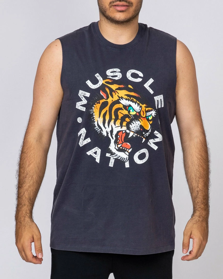 Featuring a bold tiger design and on-trend, raw cut arm holes – this tank certainly has a big personality.
