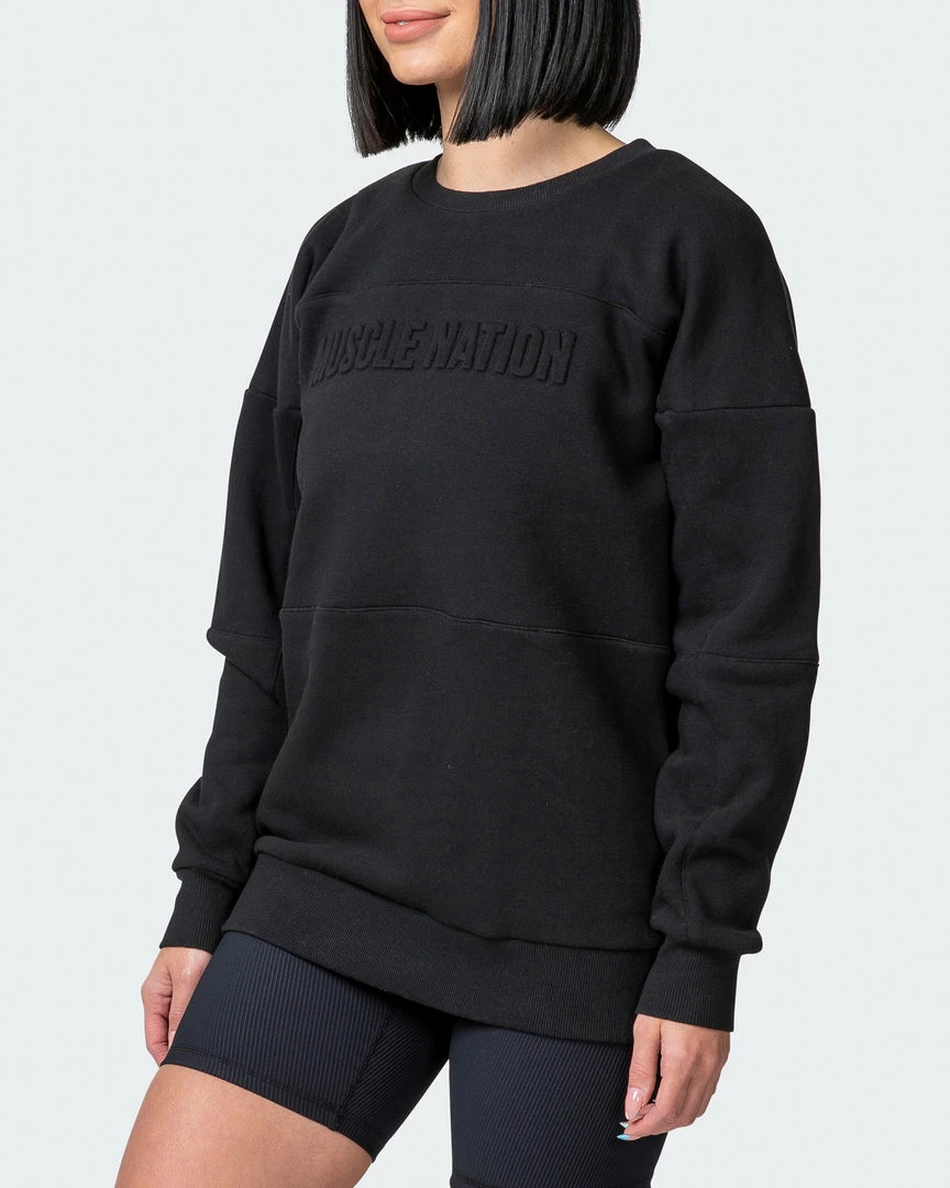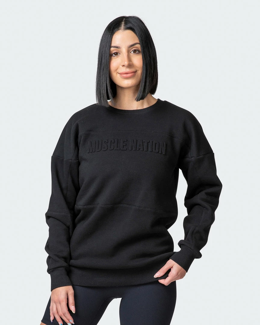 Key details include a stylish relaxed fit, ribbed cuffs, hem and neckline and flattering panel seams along the body and sleeves.