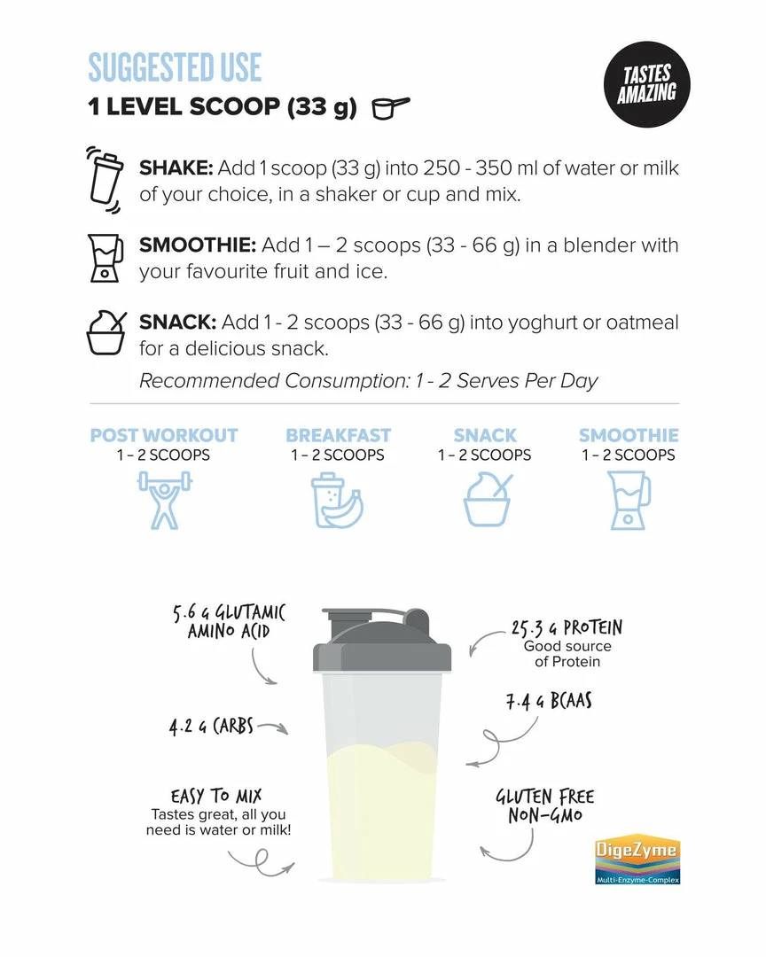Muscle Nation 100% Whey Protein Isolate (WPI) is a good source of protein. Ideal for anyone who is looking for a post-workout protein or an individual who wants to increase their daily protein intake.
