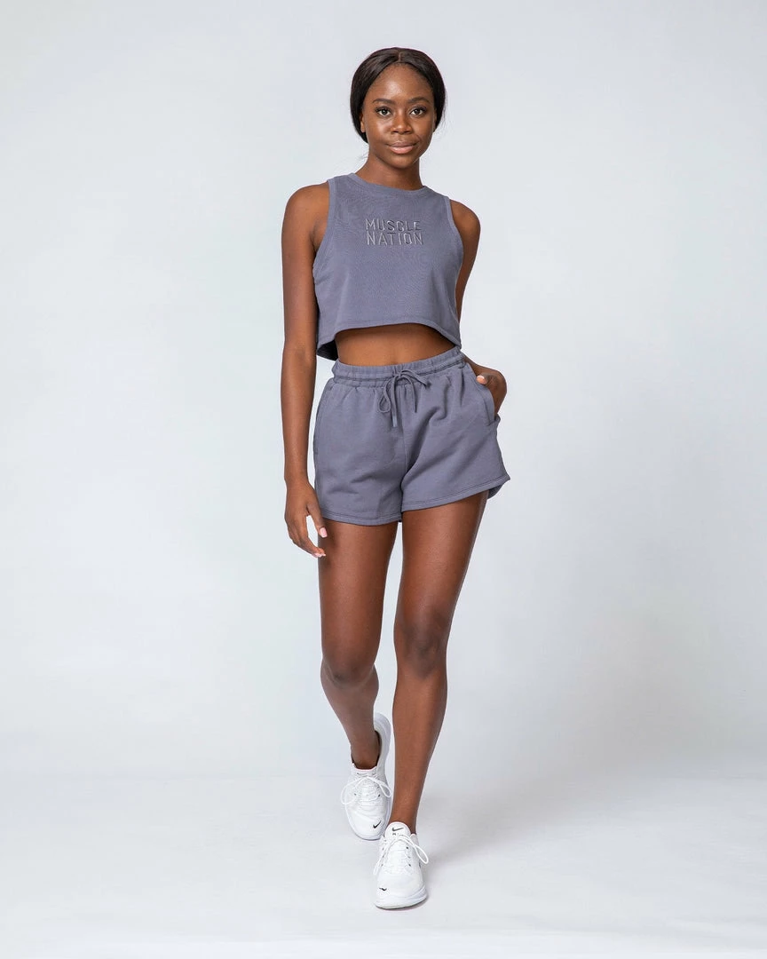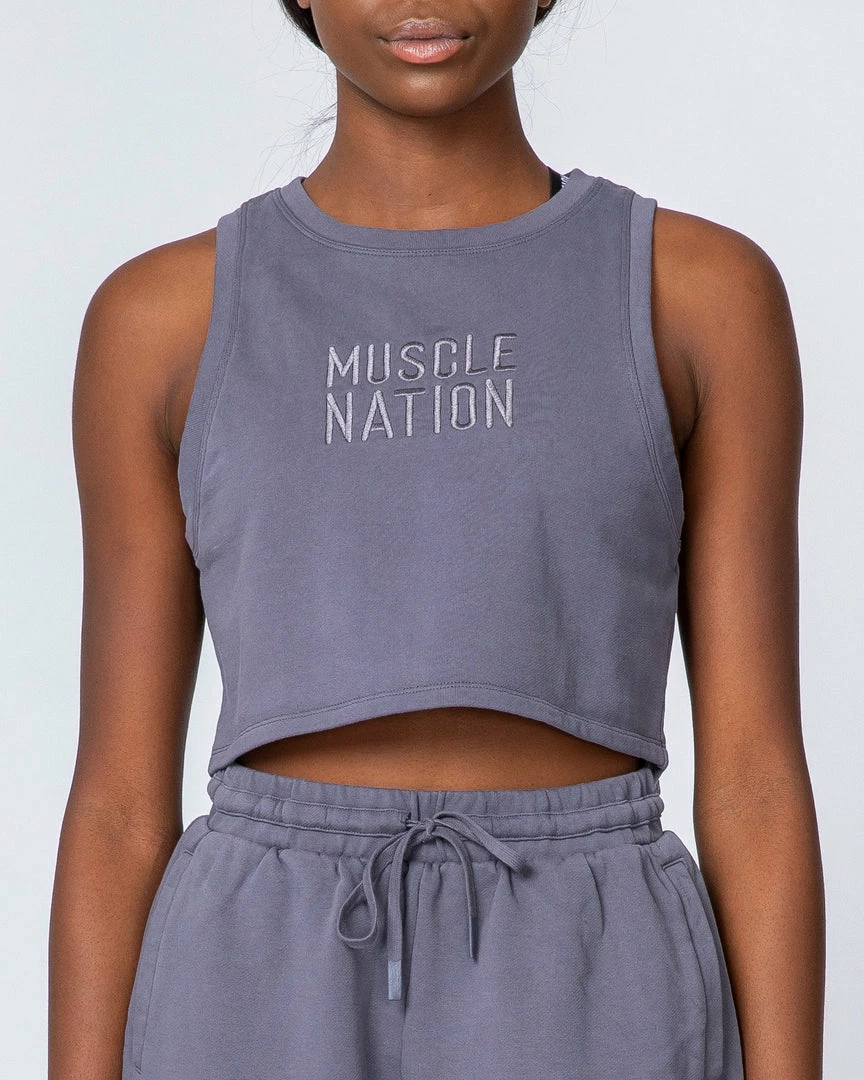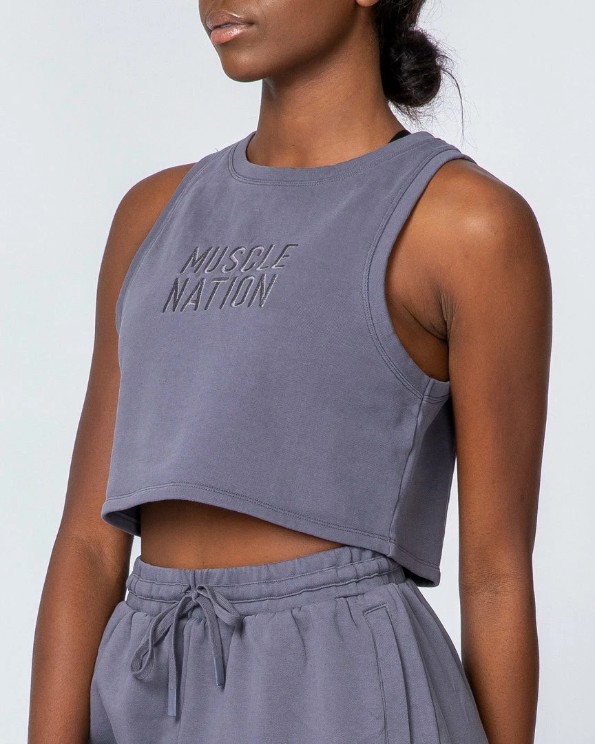 Finished in a fashion-forward acid wash for a vintage look.ย Branded with a tonal Muscle Nation embroidered logo on the front.ย ย