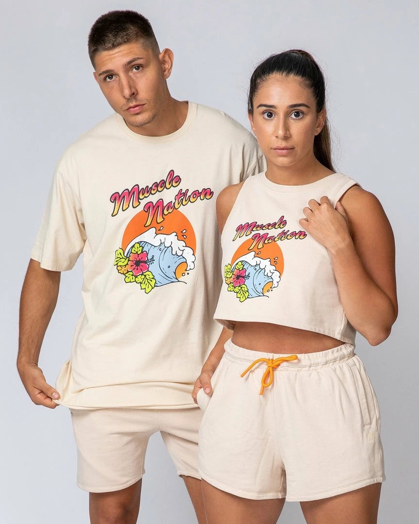Finished with a lively, vacation print and our Muscle Nation Holiday Logo.ย