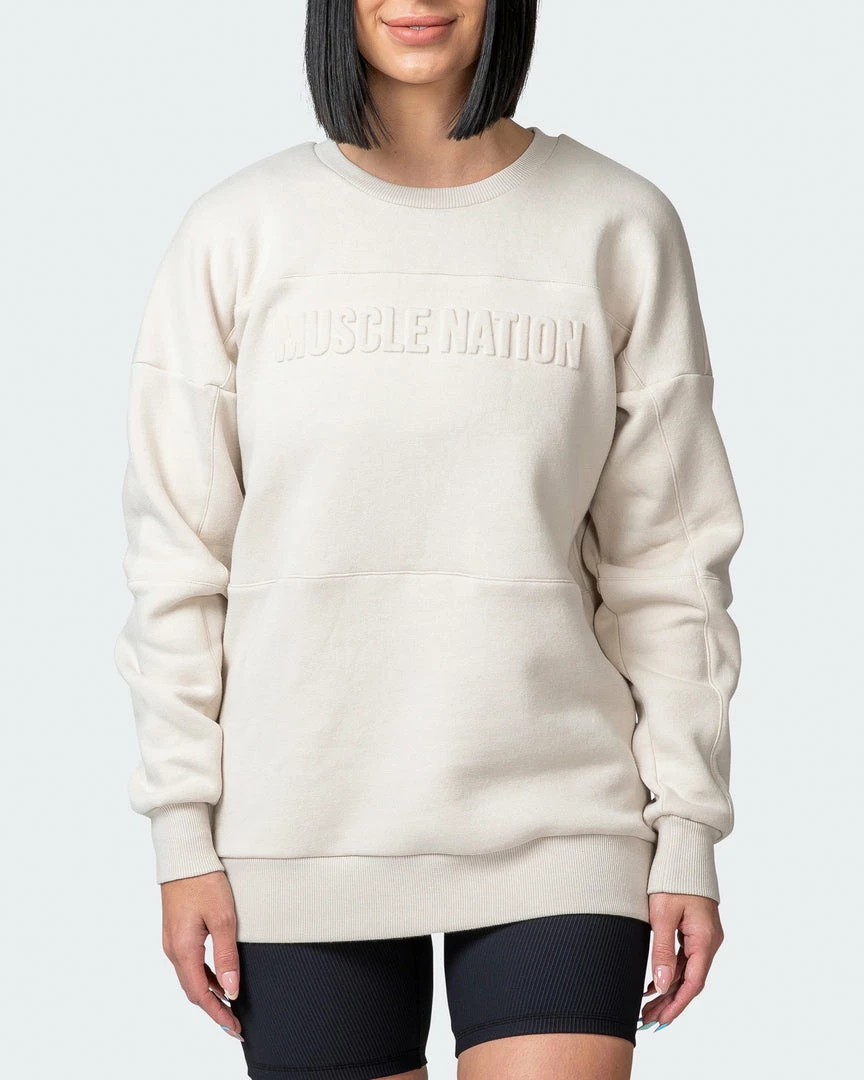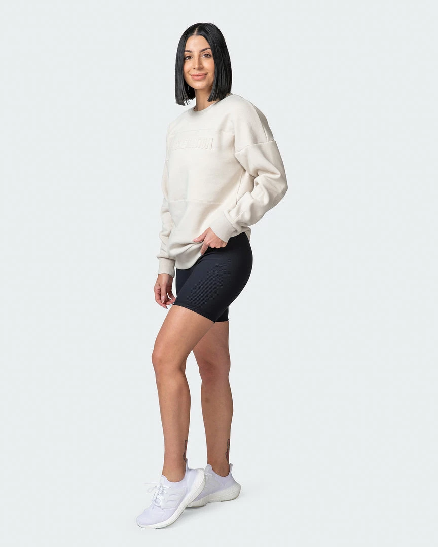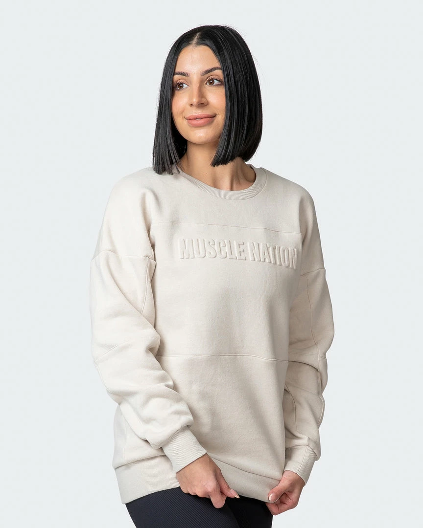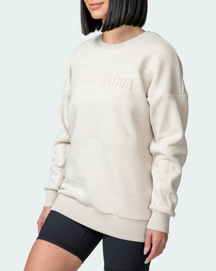 Key details include a stylish relaxed fit, ribbed cuffs, hem and neckline and flattering panel seams along the body and sleeves.