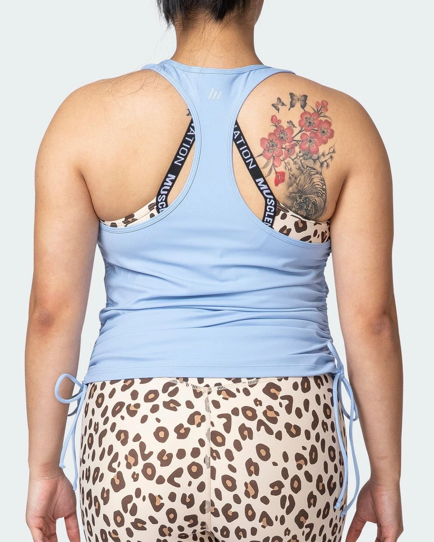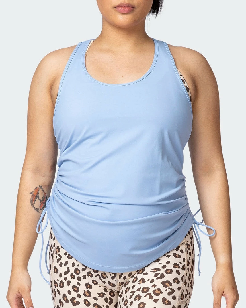Use the side ties to adjust the length lower to sit around your hips, or a little higher to cinch your waist and lower back.