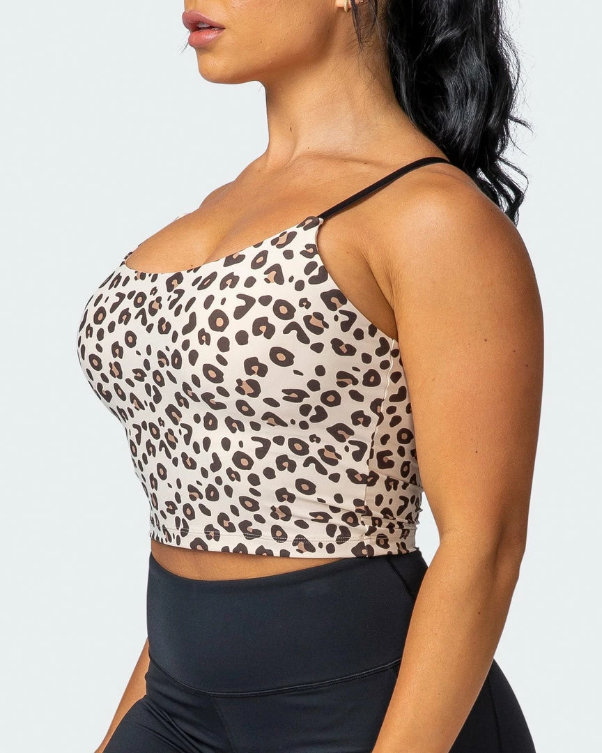 Our Summertime Cropped Tank features an inbuilt shelf bra and scoop neckline.Β