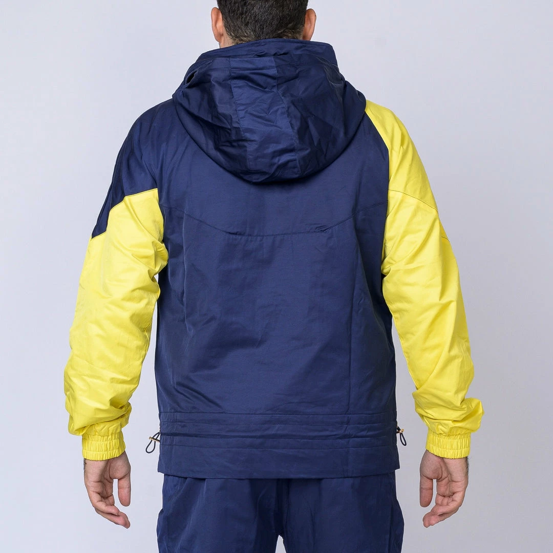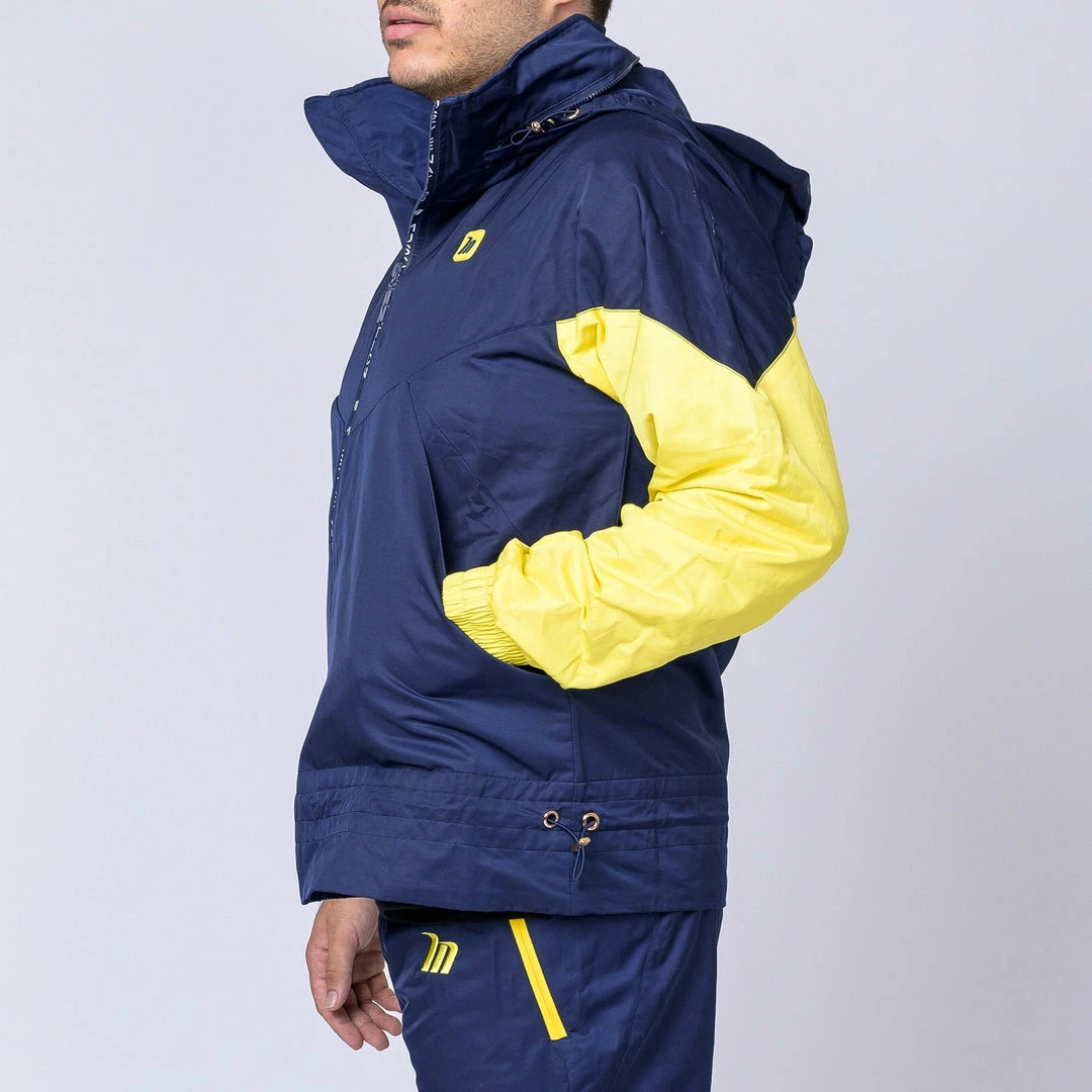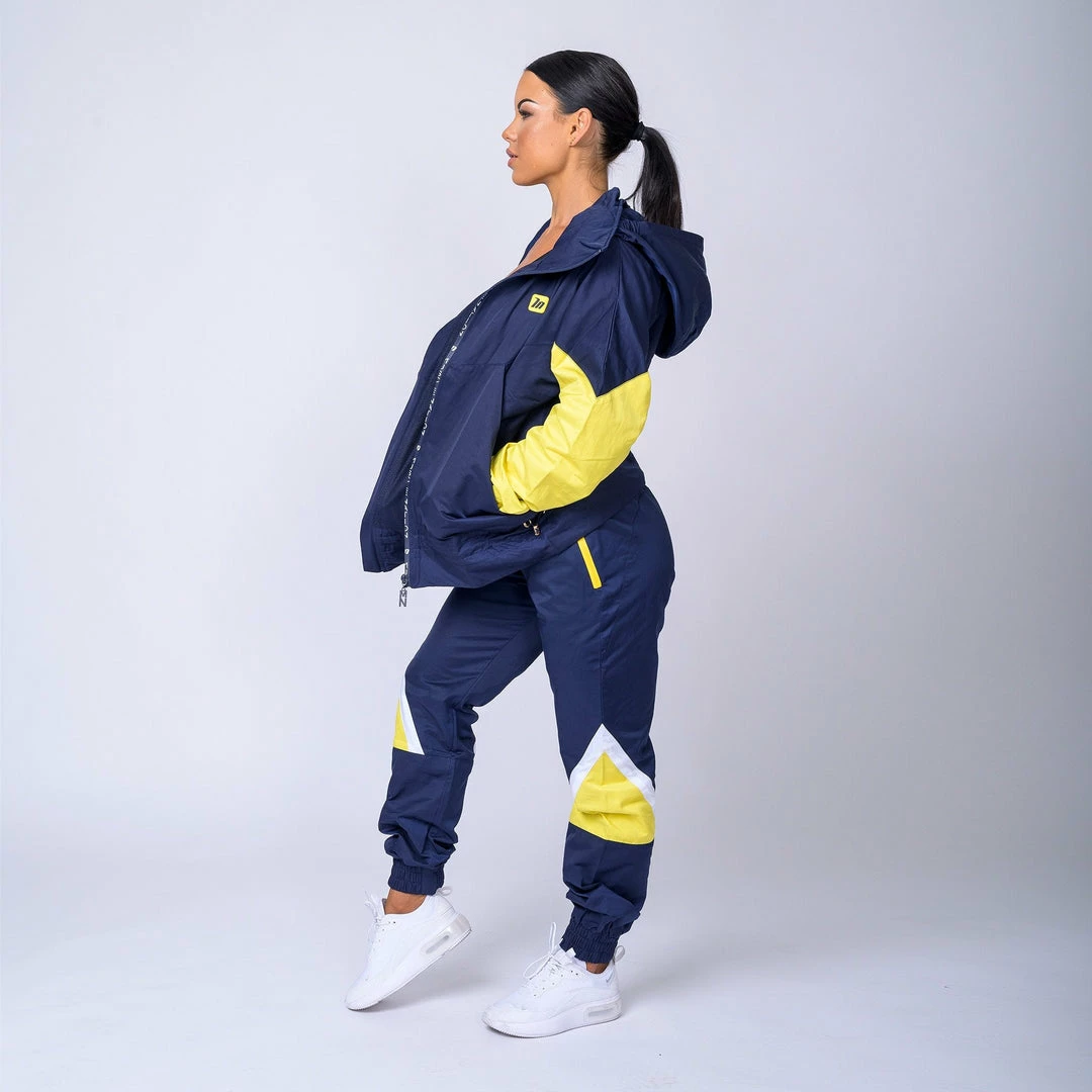 Featuringย yellow side panelling, embrace being bold,ย warmย and comfortableย in thisย retro-inspired outfit.ย An elasticated waistband with drawcords allows these bottoms to beย customised for fit and practicality. A frontal-zip, funnel neckline and fold away hood featureย contributes to this jacket’s warmth and practicality.ย