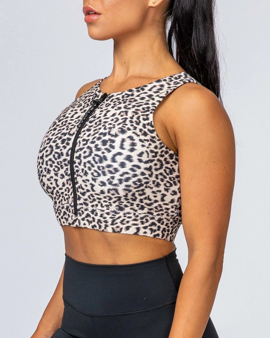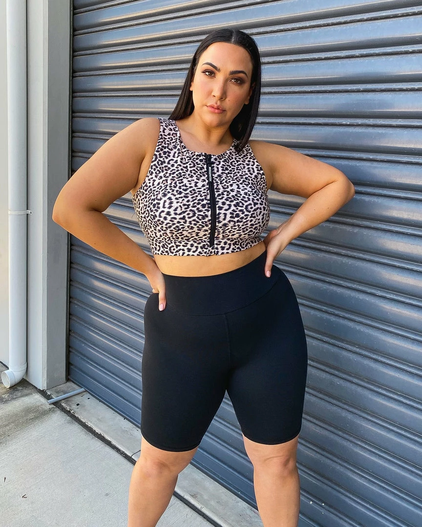 Details include an inbuilt shelf bra, front zip-up closure and premium MN branded silicone tag.